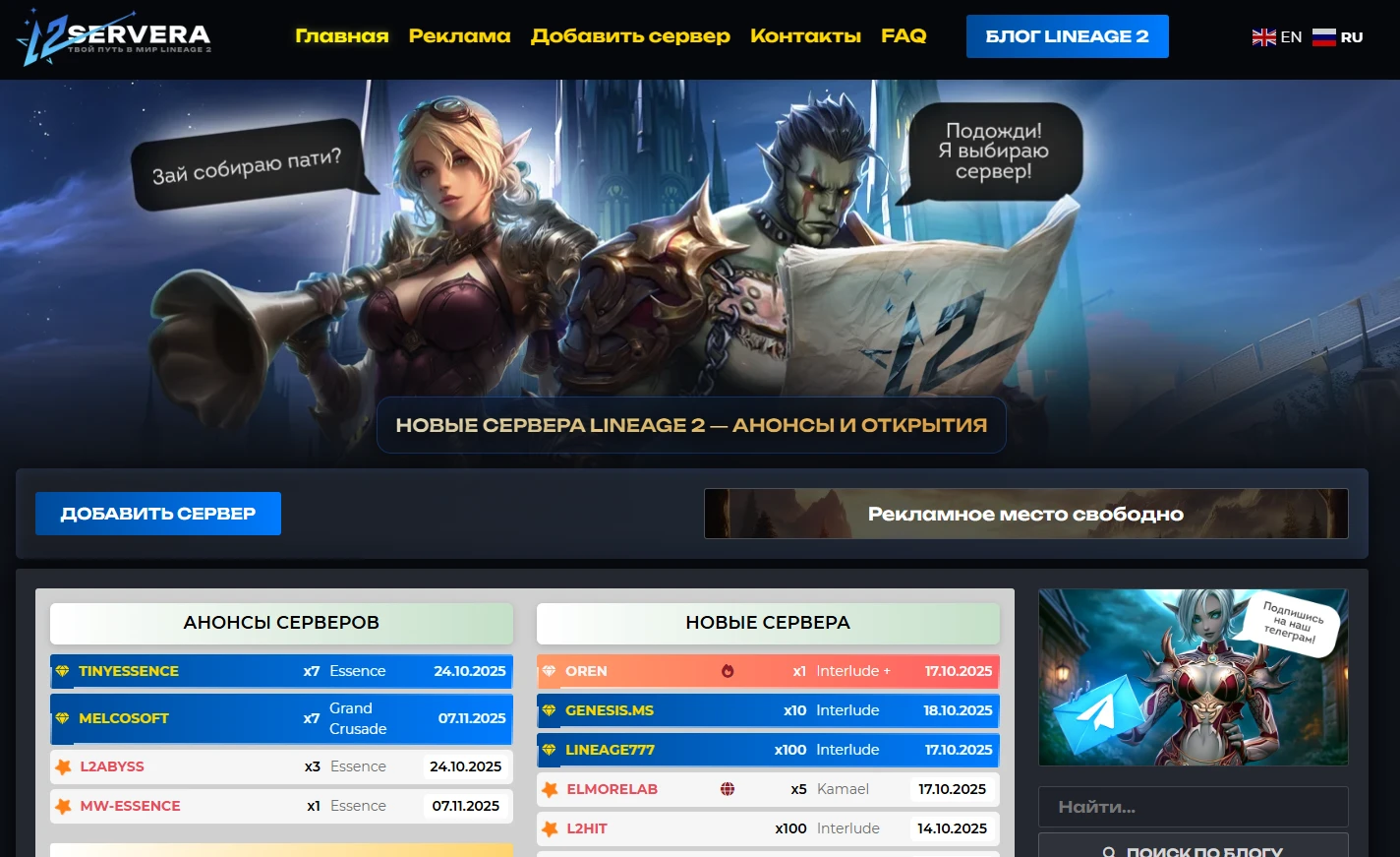 Анонсы новых серверов Lineage 2: где искать и как не пропустить открытие