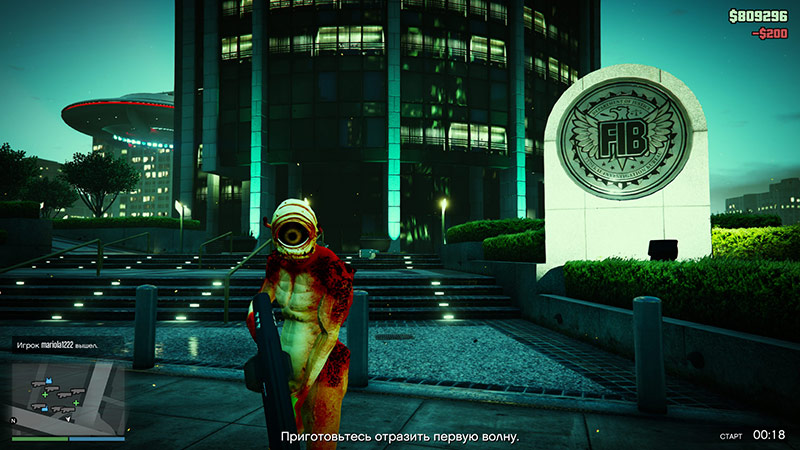 1873Проект 4808 — это особый вид выживания в GTA Online, в котором игроки (от 1 до 4) становятся инопланетными захватчиками. Данный режим доступен только в те недели, которые посвящены Хэллоуину, начиная с 2019 года и продолжая 2020-ым и 2021-ым. Обычно вознаграждение за участие щедрое, а приглашения быстро распространяются среди играющих — все хотят успеть вжиться в роли пришельцев. Их модели отличаются от того костюма, который можно получить после сбора реквизита киностудии.