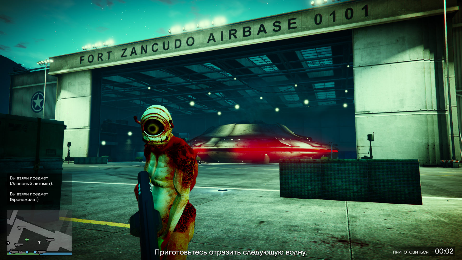 Как и в случае с обычным выживанием на территории Форта Занкудо, бой идёт возле ангаров на открытой местности. Разве что можно забраться на платформу, на которой есть укрытие. Все враги на военной базе — вояки.Ссылка на дело в Rockstar Games Social Club