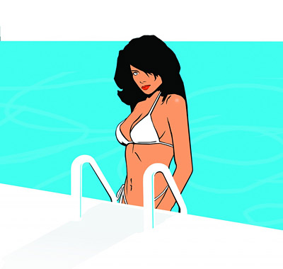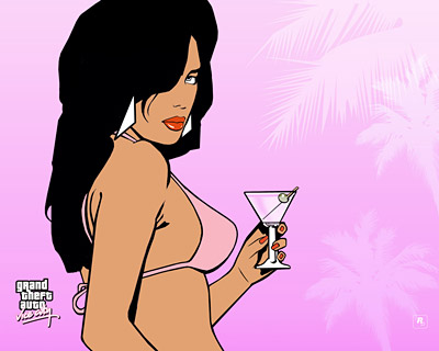 Прежде, чем перейти к иллюстрациям, хочется поделится любопытной информацией, полученной при изучении артворков Vice City. Речь идёт загадочной девушки в бикини на многих-многих картинках, обоев и прочее игры. Как удалось узнать, это две девушки - близняшки. Одна из низх работает танцовщицей в Pole Position, а вторая - барменшей в Malibu Club. Важно заметить, что они появится на своих местах только после того, как Томми купит стриптиз-бар и ночной клуб. Имён у них нет, хотя во время разработки сотрудники Rockstar звали их Белла (барменша) и Стелла (стриптизерша). В игре, в отличие от артворков, в игре обе девушки одеты в ковбойскую одежду.