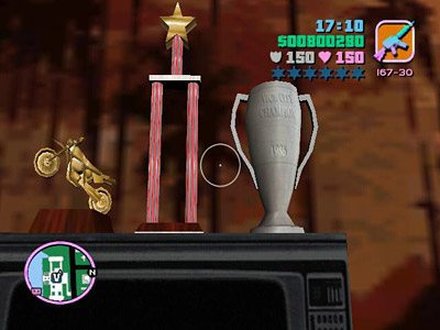 14KВ Vice City присутствуют незначительные изменения в интерьере номера отеля Ocean View и особняка Версетти. Данные изменения условно назовём трофеями. Получить их можно по мере прохождения сюжетных и дополнительных миссий.