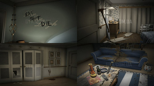 117KМеста обитания главных героев, где можно сохраняться, традиционно называют убежищами, будь то шикарный дом или картонная коробка. Число таких мест становится всё меньше, зато к вопросу внешнего вида подходят более тщательно. В "Пятёрки" это места повышенного интереса - тут заслуживает внимания буквально каждая деталь интерьера. Функций стало больше: можно не только спать/сохраняться, смотреть телевизор, переодеваться и выходить в Интернет, но и курить бонг, пропустить рюмашку-другую, выпить бутылочку пива. Мелочи, но приятные. Кроме того дом реально "оживили" - почти в каждом убежище есть и другие люди, живущие вместе с протагонистами. Обычно - семья или родственники. В ходе продвижения по сюжету появляются новые детали, вроде будки и самого Чопа на заднем дворе дома Франклина. Ну, а доступ одного героя к жилищам других строго обусловлен тем же сценарием.