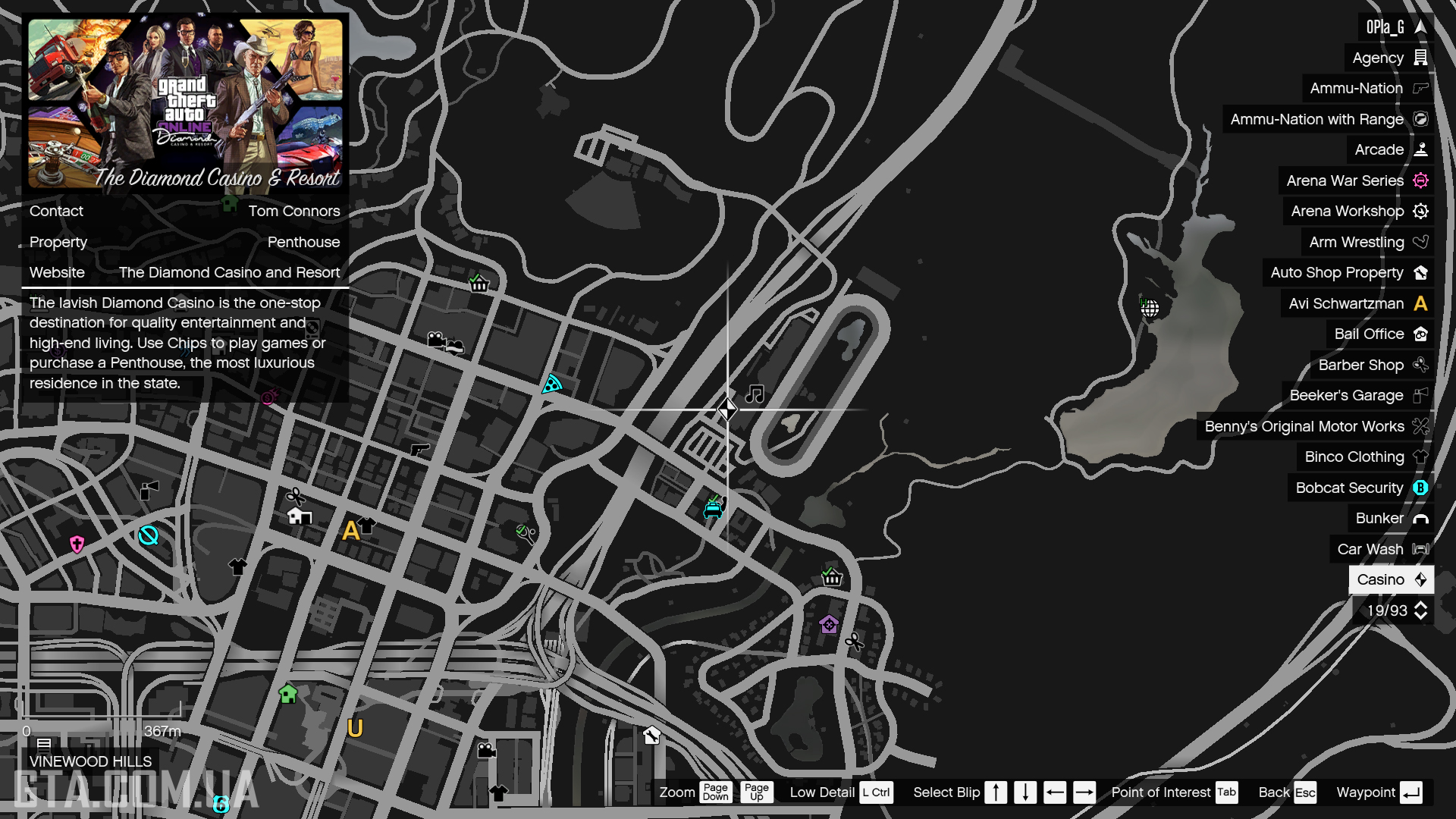Where is Master Penthouse located? The casino is located at the intersection of Vinewood Park Drive and Mirror Park Boulevard in East Vinewood. On the map and radar, it is marked with an icon. Can you sell the Master Penthouse? No, once purchased, it cannot be sold or traded.
