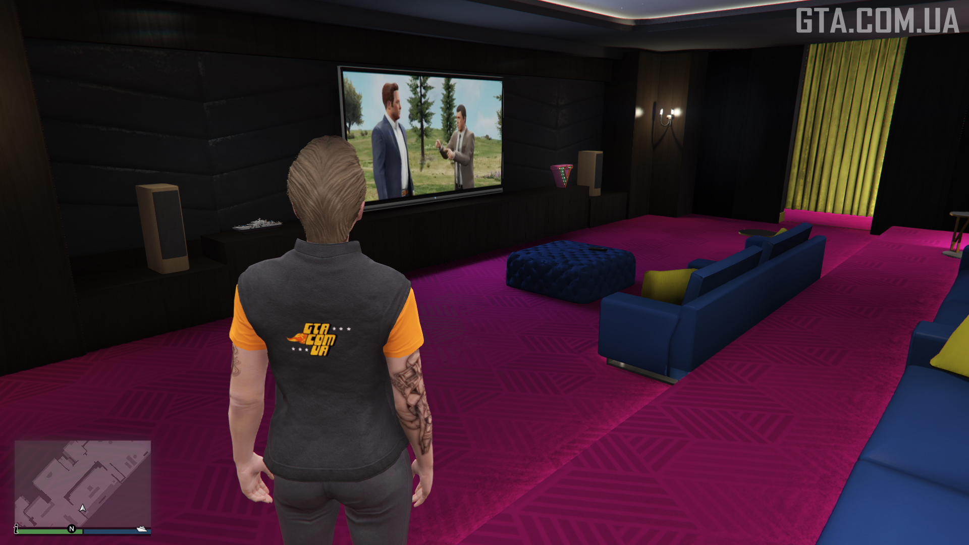 Price: GTA$ 500,000For half a million, you unlock a home theater where you can comfortably watch TV shows and movies on a large screen, and also play the arcade mini-game Don’t Cross the Line with two, three, or four players.