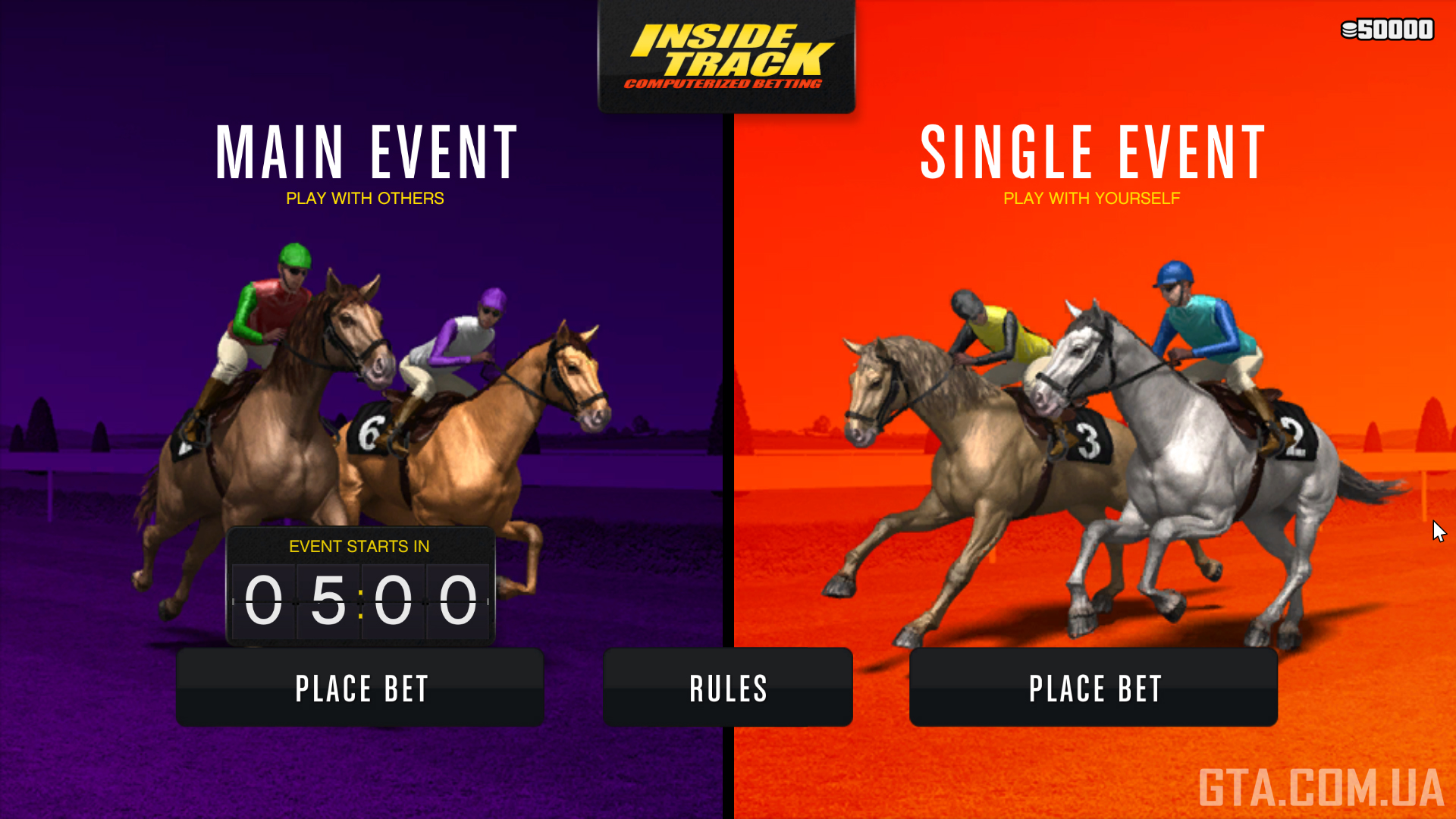 1299Bookmaking office Inside Track is located right inside the casino. It has a dedicated room with a large screen and 16 computers (some of which are occupied by NPCs, while players can use the available ones). Possible bets are: 100, 200, 300, 400, 500, 600, 700, 800, 900, 1,000, 1,500, 2,000, 2,500, 3,000, 3,500, 4,000, 4,500, 5,000, 5,500, 6,000, 6,500, 7,000, 7,500, 8,000, 8,500, 9,000, 9,500, or 10,000 chips. You can only place a bet on one horse out of six in a race (there are 99 in the game). Each horse has its own odds. The higher the odds, the lower the chances of winning (second, third, and other places are losing), but the payout is greater.