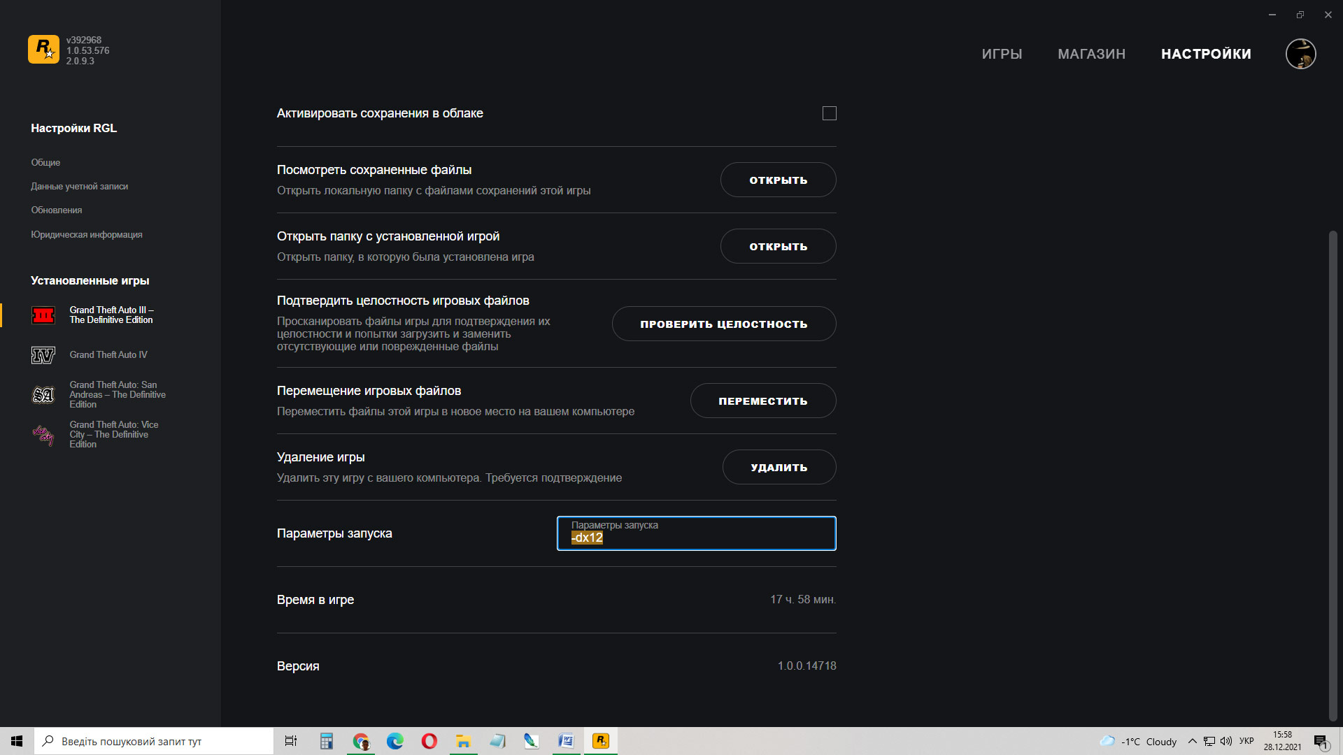 1031Чтобы повысить количество кадров в секунду (frames per second), зайдите в настройки в Rockstar Games Launcher, выберете игру и вбейте значение –dx12 в строку «Параметры запуска».