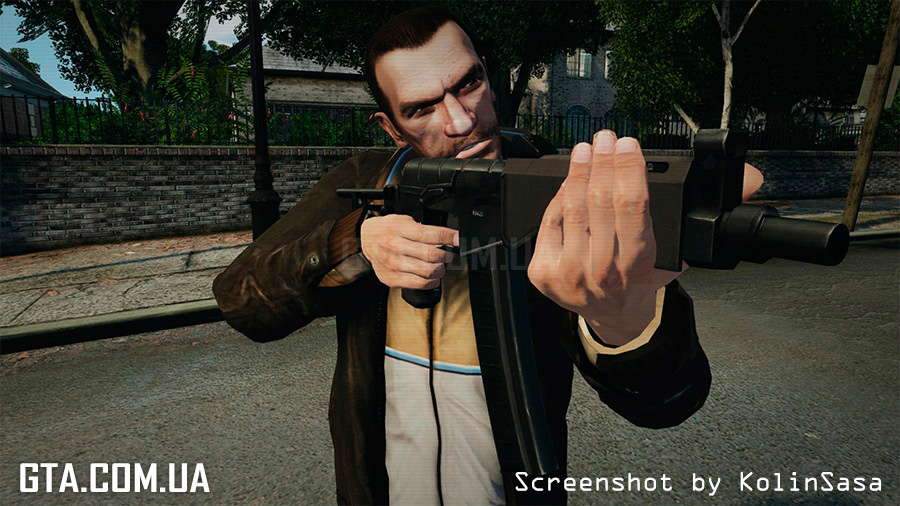 С помощью программы SparkIV или OpenIV, замените в файле "weapons.img" (он находится в "Rockstar Games\Grand Theft Auto IV\pc\models\cdimages"), файлы "w_mp5.wft" и "w_mp5.wtd" на аналогичные из архива.