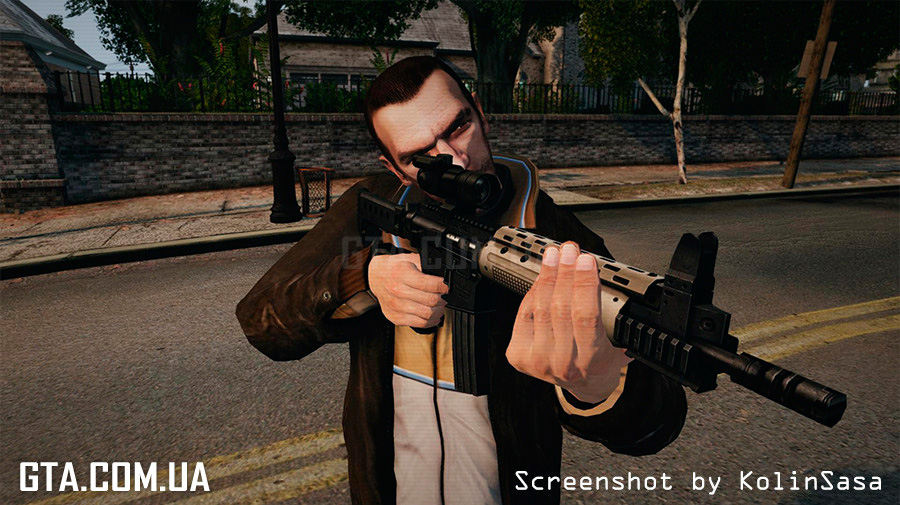 С помощью программы SparkIV или OpenIV, замените в файле "weapons.img" (он находится в "Rockstar Games\Grand Theft Auto IV\pc\models\cdimages"), файлы "w_m4.wft" и "w_m4.wtd" на аналогичные из архива.