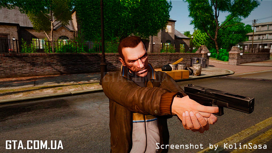 С помощью программы SparkIV или OpenIV, замените в файле "weapons.img" (он находится в "Rockstar Games\Grand Theft Auto IV\pc\models\cdimages"), файлы "w_glock.wft" и "w_glock.wtd" на аналогичные из архива.