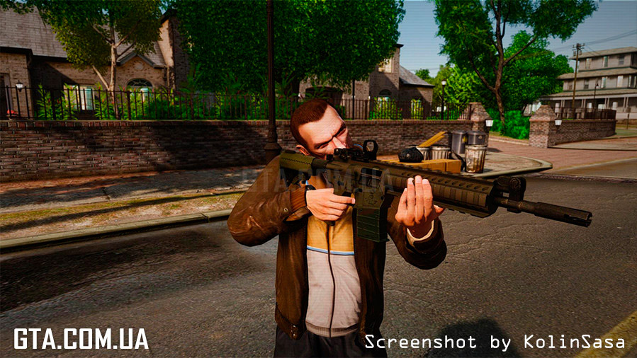 С помощью программы SparkIV или OpenIV, замените в файле "weapons.img" (он находится в "Rockstar Games\Grand Theft Auto IV\pc\models\cdimages"), файлы "w_ak47.wft" и "w_ak47.wtd" на аналогичные из архива.