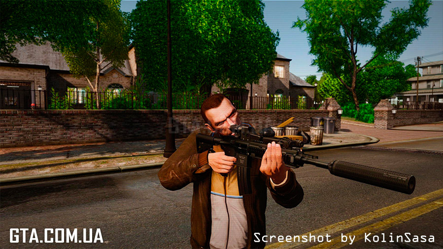 С помощью программы SparkIV или OpenIV, замените в файле "weapons.img" (он находится в "Rockstar Games\Grand Theft Auto IV\pc\models\cdimages"), файлы "w_m4.wft" и "w_m4.wtd" на аналогичные из архива.