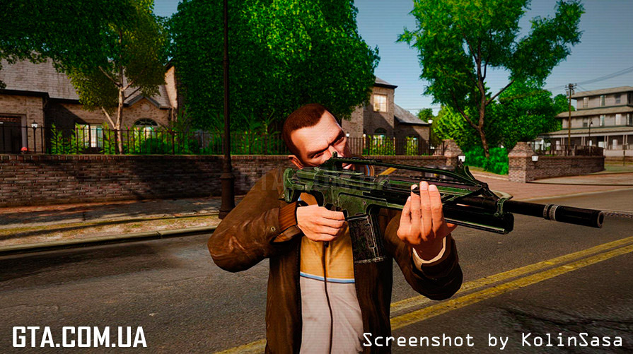 С помощью программы SparkIV или OpenIV, замените в файле "weapons.img" (он находится в "Rockstar Games\Grand Theft Auto IV\pc\models\cdimages"), файлы "w_ak47.wft" и "w_ak47.wtd" на аналогичные из архива.