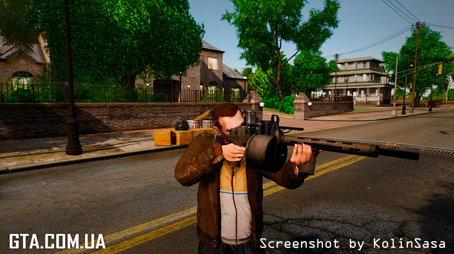 С помощью программы SparkIV или OpenIV, замените в файле "weapons.img" (он находится в "Rockstar Games\Grand Theft Auto IV\pc\models\cdimages"), файлы "w_pumpshot.wft" и "w_pumpshot.wtd" на аналогичные из архива.