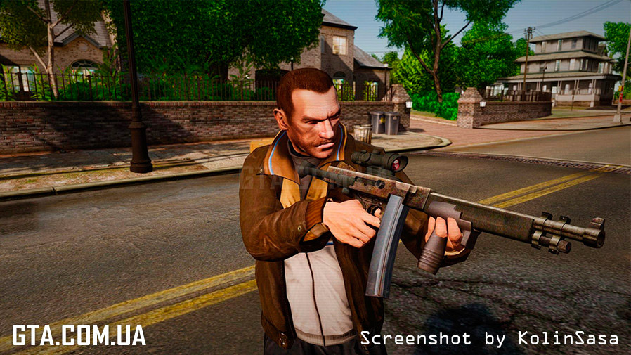 С помощью программы SparkIV или OpenIV, замените в файле "weapons.img" (он находится в "Rockstar Games\Grand Theft Auto IV\pc\models\cdimages"), файлы "w_mp5.wft" и "w_mp5.wtd" на аналогичные из архива.