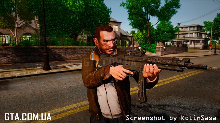 С помощью программы SparkIV или OpenIV, замените в файле "weapons.img" (он находится в "Rockstar Games\Grand Theft Auto IV\pc\models\cdimages"), файлы "w_mp5.wft" и "w_mp5.wtd" на аналогичные из архива.