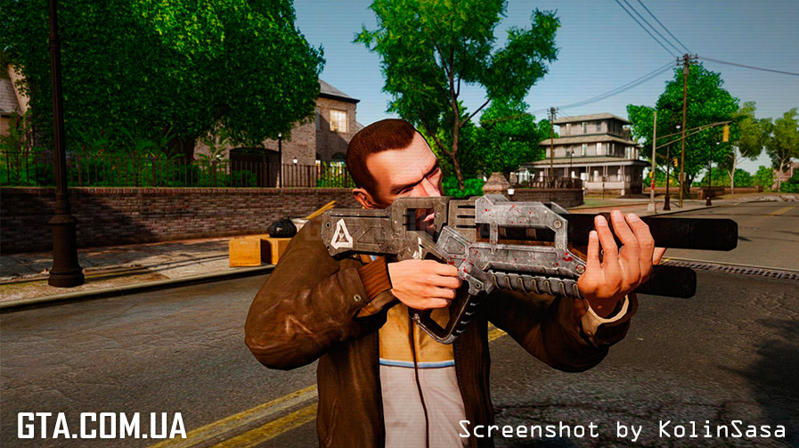 С помощью программы SparkIV или OpenIV, замените в файле "weapons.img" (он находится в "Rockstar Games\Grand Theft Auto IV\pc\models\cdimages"), файлы "w_m4.wft" и "w_m4.wtd" на аналогичные из архива.
