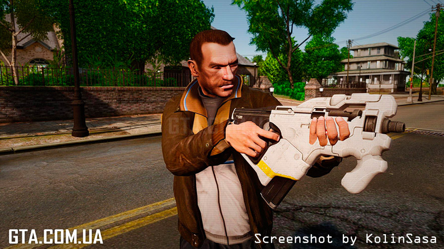 С помощью программы SparkIV или OpenIV, замените в файле "weapons.img" (он находится в "Rockstar Games\Grand Theft Auto IV\pc\models\cdimages"), файлы "w_mp5.wft" и "w_mp5.wtd" на аналогичные из архива.