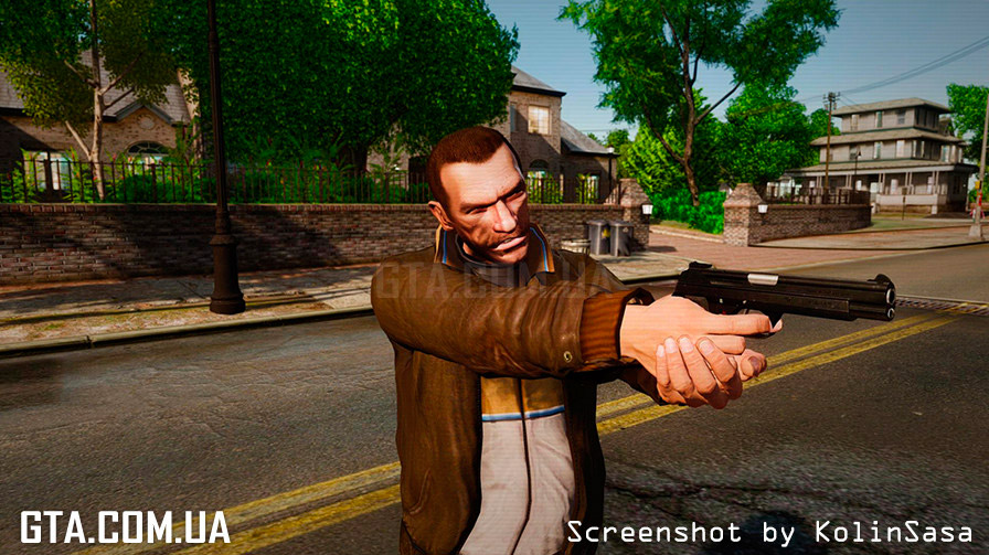 С помощью программы SparkIV или OpenIV, замените в файле "weapons.img" (он находится в "Rockstar Games\Grand Theft Auto IV\pc\models\cdimages"), файлы "w_glock.wft" и "w_glock.wtd" на аналогичные из архива.