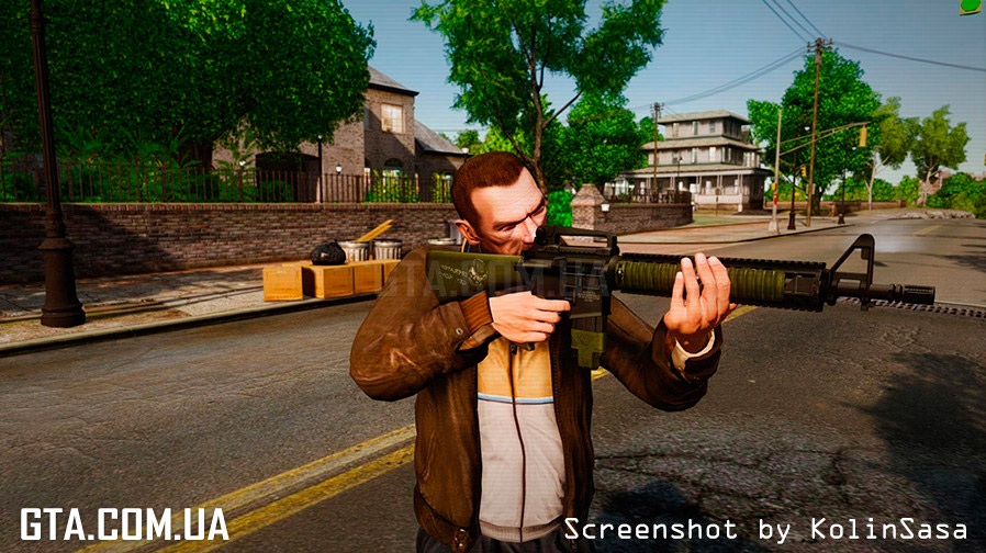 С помощью программы SparkIV или OpenIV, замените в файле "weapons.img" (он находится в "Rockstar Games\Grand Theft Auto IV\pc\models\cdimages"), файлы "w_m4.wft" и "w_m4.wtd" на аналогичные из архива.