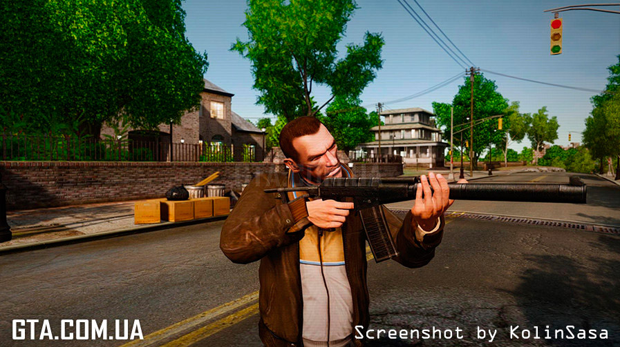 С помощью программы SparkIV или OpenIV, замените в файле "weapons.img" (он находится в "Rockstar Games\Grand Theft Auto IV\pc\models\cdimages"), файлы "w_ak47.wft" и "w_ak47.wtd" на аналогичные из архива.