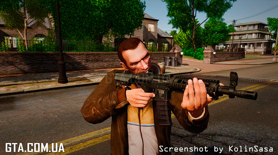 С помощью программы SparkIV или OpenIV, замените в файле "weapons.img" (он находится в "Rockstar Games\Grand Theft Auto IV\pc\models\cdimages"), файлы "w_m4.wft" и "w_m4.wtd" на аналогичные из архива.