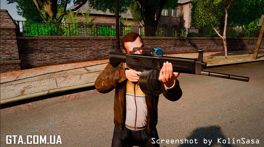 С помощью программы SparkIV или OpenIV, замените в файле "weapons.img" (он находится в "Rockstar Games\Grand Theft Auto IV - Episodes From Liberty City\TBoGT\pc\models\cdimages"), файлы "w_e2_aa12.wft" и "w_e2_aa12.wtd" на аналогичные из архива.