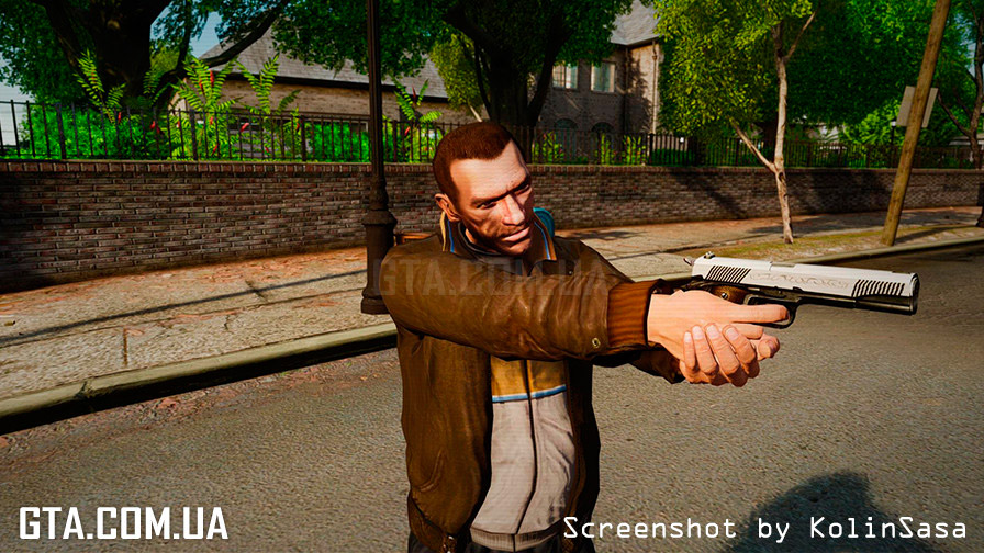 С помощью программы SparkIV или OpenIV, замените в файле "weapons.img" (он находится в "Rockstar Games\Grand Theft Auto IV\pc\models\cdimages"), файлы "w_glock.wft" и "w_glock.wtd" на аналогичные из архива.