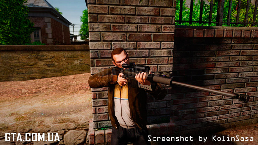 С помощью программы SparkIV или OpenIV, замените в файле "weapons.img" (он находится в "Rockstar Games\Grand Theft Auto IV\pc\models\cdimages"), файлы "w_rifle.wft" и "w_rifle.wtd" на аналогичные из архива.
