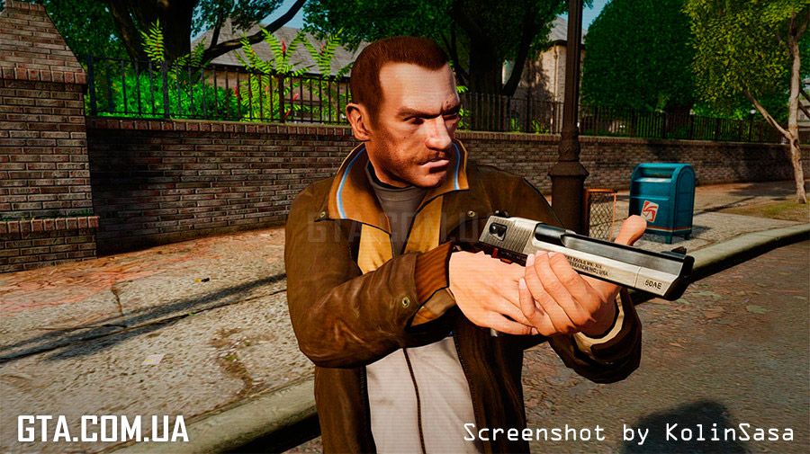 С помощью программы SparkIV или OpenIV, замените в файле "weapons.img" (он находится в "Rockstar Games\Grand Theft Auto IV\pc\models\cdimages"), файлы "w_eagle.wft" и "w_eagle.wtd" на аналогичные из архива.