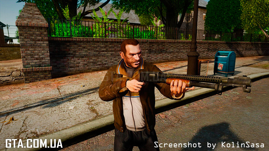 С помощью программы SparkIV или OpenIV, замените в файле "weapons.img" (он находится в "Rockstar Games\Grand Theft Auto IV\pc\models\cdimages"), файлы "w_shotgun.wft" и "w_shotgun.wtd" на аналогичные из архива.