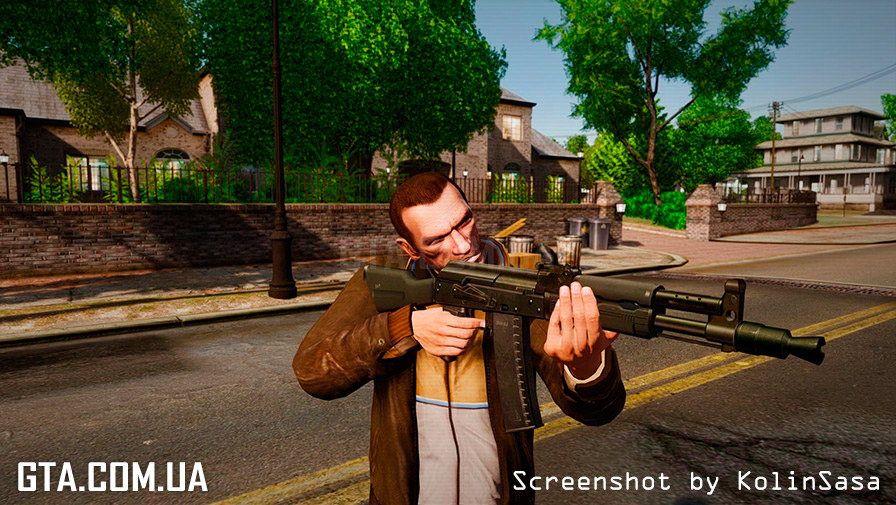 С помощью программы SparkIV или OpenIV, замените в файле "weapons.img" (он находится в "Rockstar Games\Grand Theft Auto IV\pc\models\cdimages"), файлы "w_ak47.wft" и "w_ak47.wtd" на аналогичные из архива.