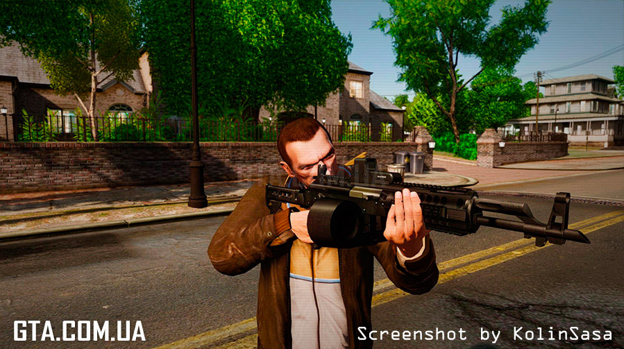 С помощью программы SparkIV или OpenIV, замените в файле "weapons.img" (он находится в "Rockstar Games\Grand Theft Auto IV\pc\models\cdimages"), файлы "w_ak47.wft" и "w_ak47.wtd" на аналогичные из архива.