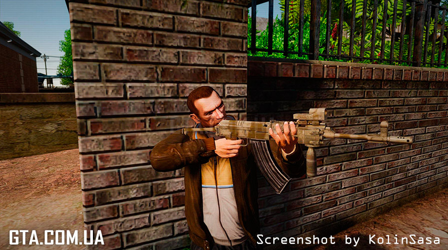С помощью программы SparkIV или OpenIV, замените в файле "weapons.img" (он находится в "Rockstar Games\Grand Theft Auto IV\pc\models\cdimages"), файлы "w_ak47.wft" и "w_ak47.wtd" на аналогичные из архива.