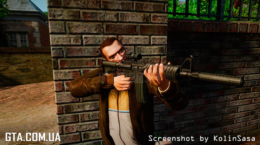 С помощью программы SparkIV или OpenIV, замените в файле "weapons.img" (он находится в "Rockstar Games\Grand Theft Auto IV\pc\models\cdimages"), файлы "w_m4.wft" и "w_m4.wtd" на аналогичные из архива.