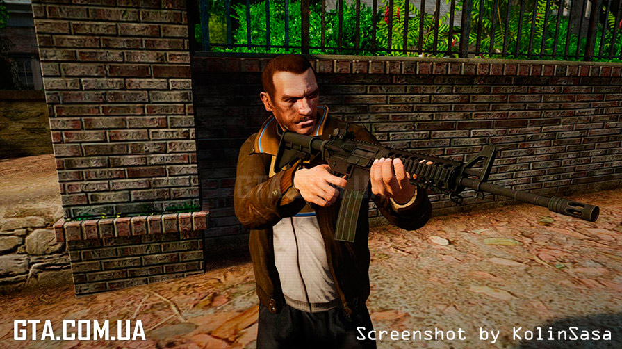 С помощью программы SparkIV или OpenIV, замените в файле "weapons.img" (он находится в "Rockstar Games\Grand Theft Auto IV\pc\models\cdimages"), файлы "w_m4.wft" и "w_m4.wtd" на аналогичные из архива.