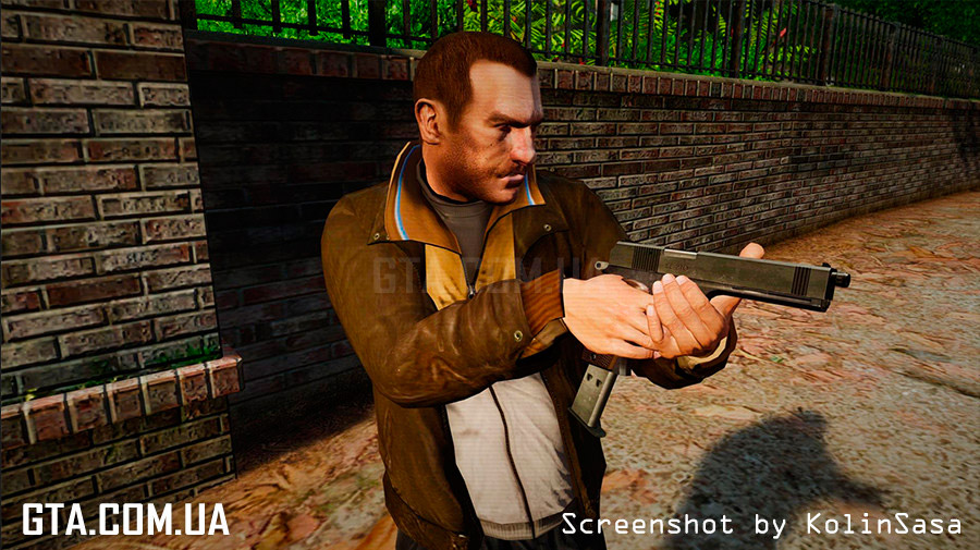 С помощью программы SparkIV или OpenIV, замените в файле "weapons.img" (он находится в "Rockstar Games\Grand Theft Auto IV\pc\models\cdimages"), файлы "w_glock.wft" и "w_glock.wtd" на аналогичные из архива.