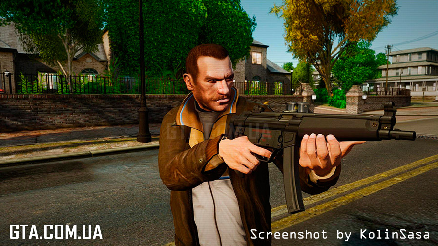С помощью программы SparkIV или OpenIV, замените в файле "weapons.img" (он находится в "Rockstar Games\Grand Theft Auto IV\pc\models\cdimages"), файлы "w_mp5.wft" и "w_mp5.wtd" на аналогичные из архива.