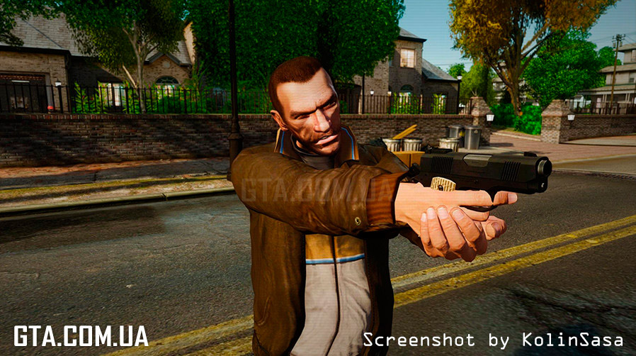С помощью программы SparkIV или OpenIV, замените в файле "weapons.img" (он находится в "Rockstar Games\Grand Theft Auto IV\pc\models\cdimages"), файлы "w_glock.wft" и "w_glock.wtd" на аналогичные из архива.