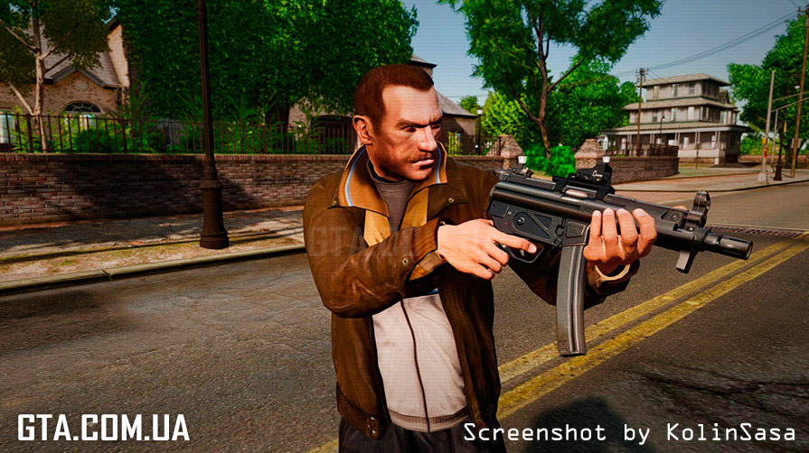 С помощью программы SparkIV или OpenIV, замените в файле "weapons.img" (он находится в "Rockstar Games\Grand Theft Auto IV\pc\models\cdimages"), файлы "w_mp5.wft" и "w_mp5.wtd" на аналогичные из архива.