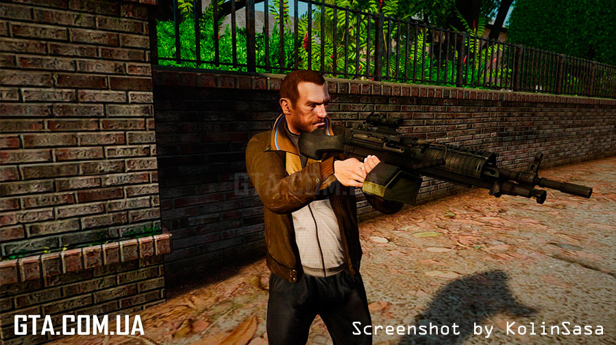 С помощью программы SparkIV или OpenIV, замените в файле "weapons.img" (он находится в "Rockstar Games\Grand Theft Auto IV\pc\models\cdimages"), файлы "w_m4.wft" и "w_m4.wtd" на аналогичные из архива.