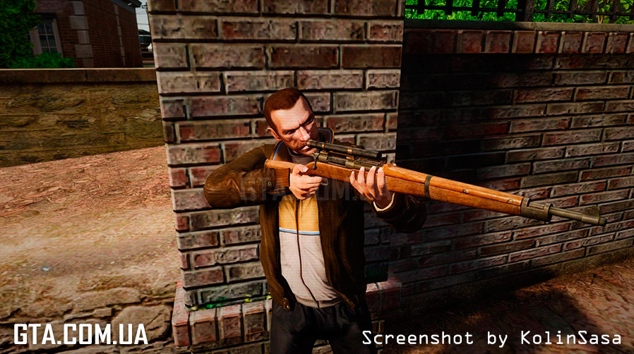 С помощью программы SparkIV или OpenIV, замените в файле "weapons.img" (он находится в "Rockstar Games\Grand Theft Auto IV\pc\models\cdimages"), файлы "w_rifle.wft" и "w_rifle.wtd" на аналогичные из архива.