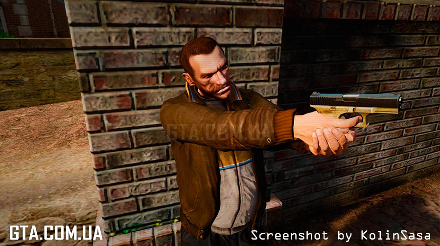 С помощью программы SparkIV или OpenIV, замените в файле "weapons.img" (он находится в "Rockstar Games\Grand Theft Auto IV\pc\models\cdimages"), файлы "w_glock.wft" и "w_glock.wtd" на аналогичные из архива.