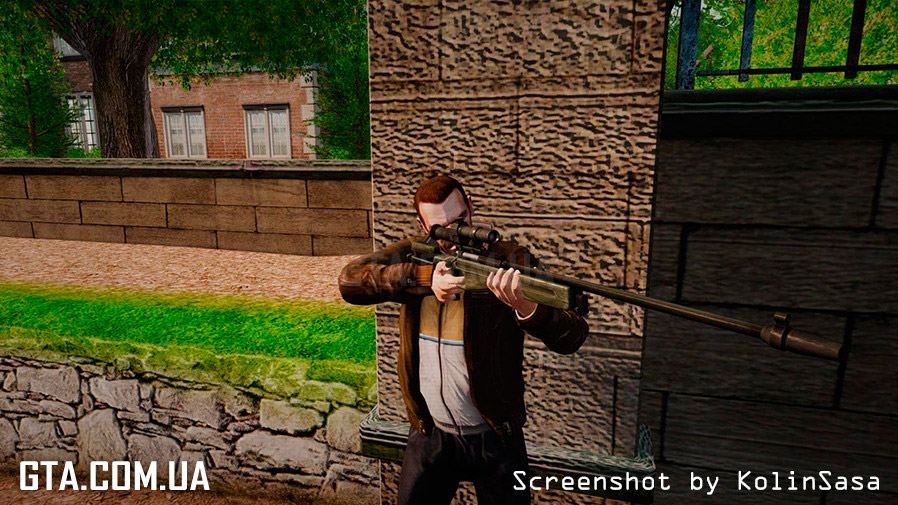 С помощью программы SparkIV или OpenIV, замените в файле "weapons.img" (он находится в "Rockstar Games\Grand Theft Auto IV\pc\models\cdimages"), файлы "w_rifle.wft" и "w_rifle.wtd" на аналогичные из архива.