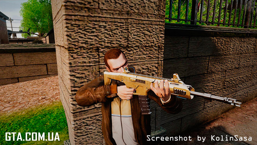 С помощью программы SparkIV или OpenIV, замените в файле "weapons.img" (он находится в "Rockstar Games\Grand Theft Auto IV\pc\models\cdimages"), файлы "w_m4.wft" и "w_m4.wtd" на аналогичные из архива.