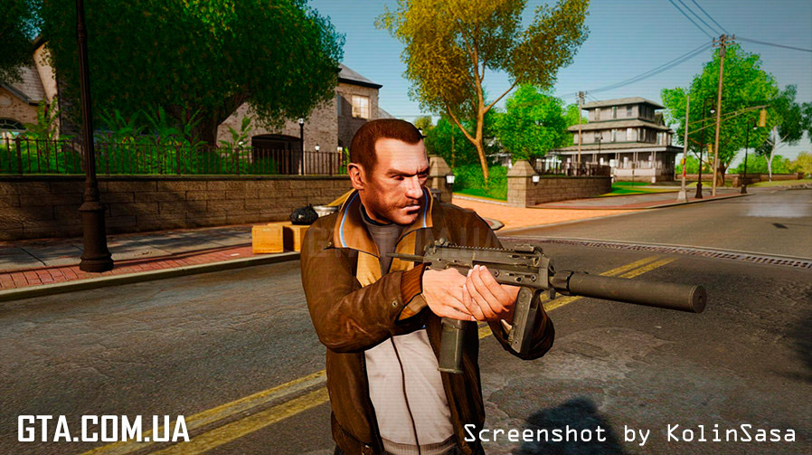 С помощью программы SparkIV или OpenIV, замените в файле "weapons.img" (он находится в "Rockstar Games\Grand Theft Auto IV\pc\models\cdimages"), файлы "w_uzi.wft" и "w_uzi.wtd" на аналогичные из архива.