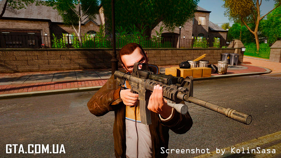 С помощью программы SparkIV или OpenIV, замените в файле "weapons.img" (он находится в "Rockstar Games\Grand Theft Auto IV\pc\models\cdimages"), файлы "w_m4.wft" и "w_m4.wtd" на аналогичные из архива.