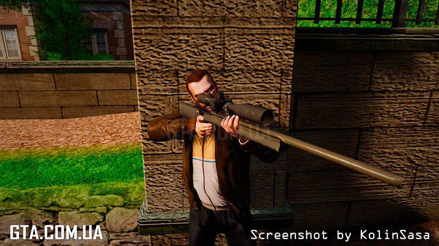 С помощью программы SparkIV или OpenIV, замените в файле "weapons.img" (он находится в "Rockstar Games\Grand Theft Auto IV\pc\models\cdimages"), файлы "w_rifle.wft" и "w_rifle.wtd" на аналогичные из архива.