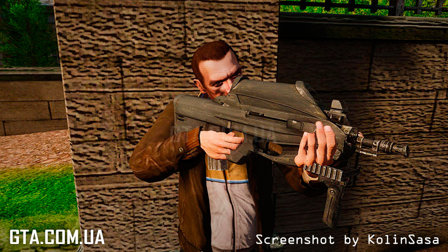 С помощью программы SparkIV или OpenIV, замените в файле "weapons.img" (он находится в "Rockstar Games\Grand Theft Auto IV\pc\models\cdimages"), файлы "w_ak47.wft" и "w_ak47.wtd" на аналогичные из архива.