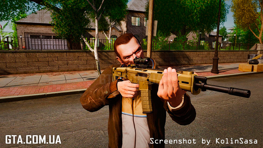 С помощью программы SparkIV или OpenIV, замените в файле "weapons.img" (он находится в "Rockstar Games\Grand Theft Auto IV\pc\models\cdimages"), файлы "w_m4.wft" и "w_m4.wtd" на аналогичные из архива.