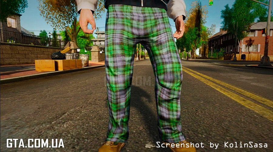 Новые штаны в клетку можно найти при помощи Ped Customizer.